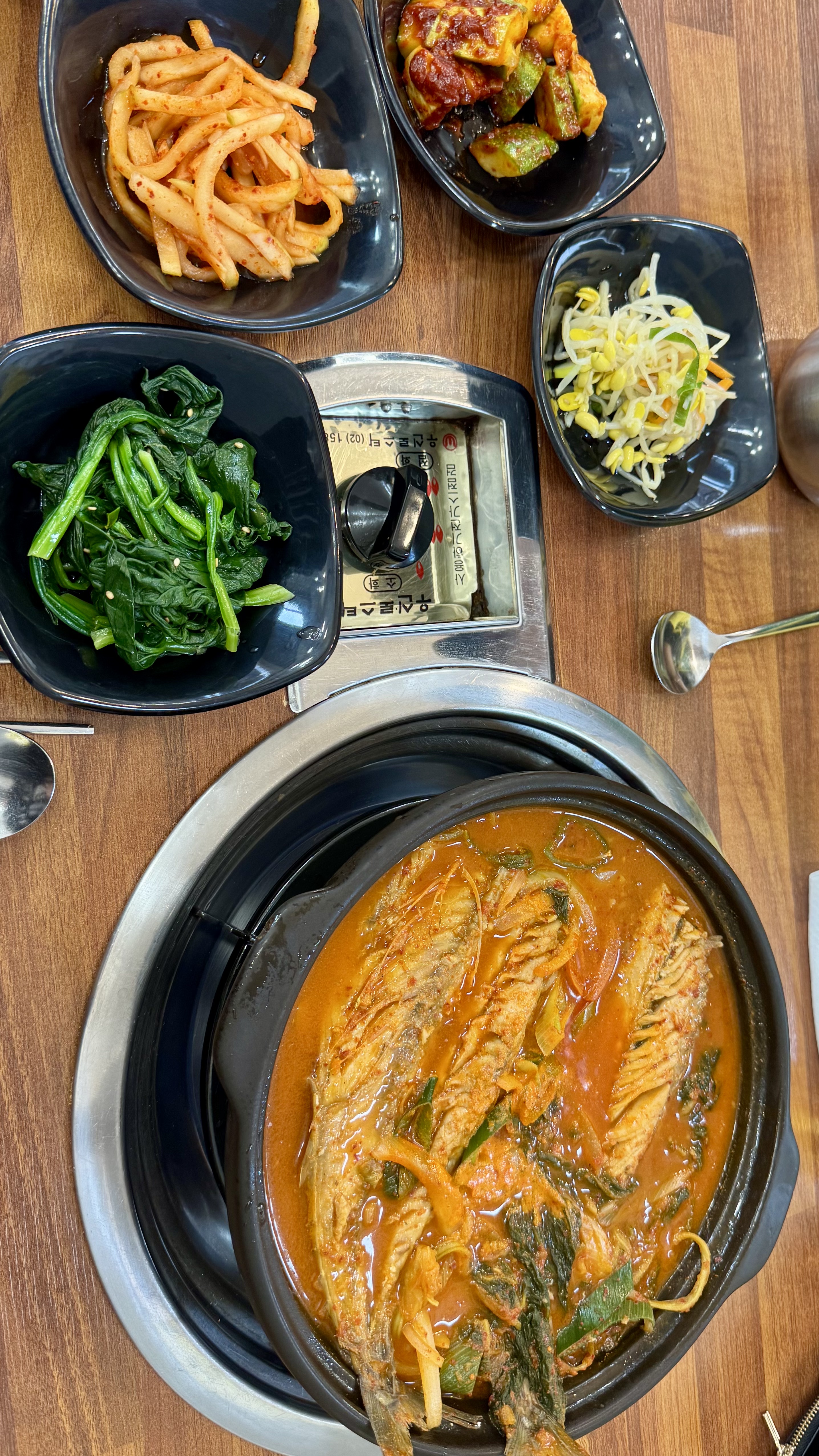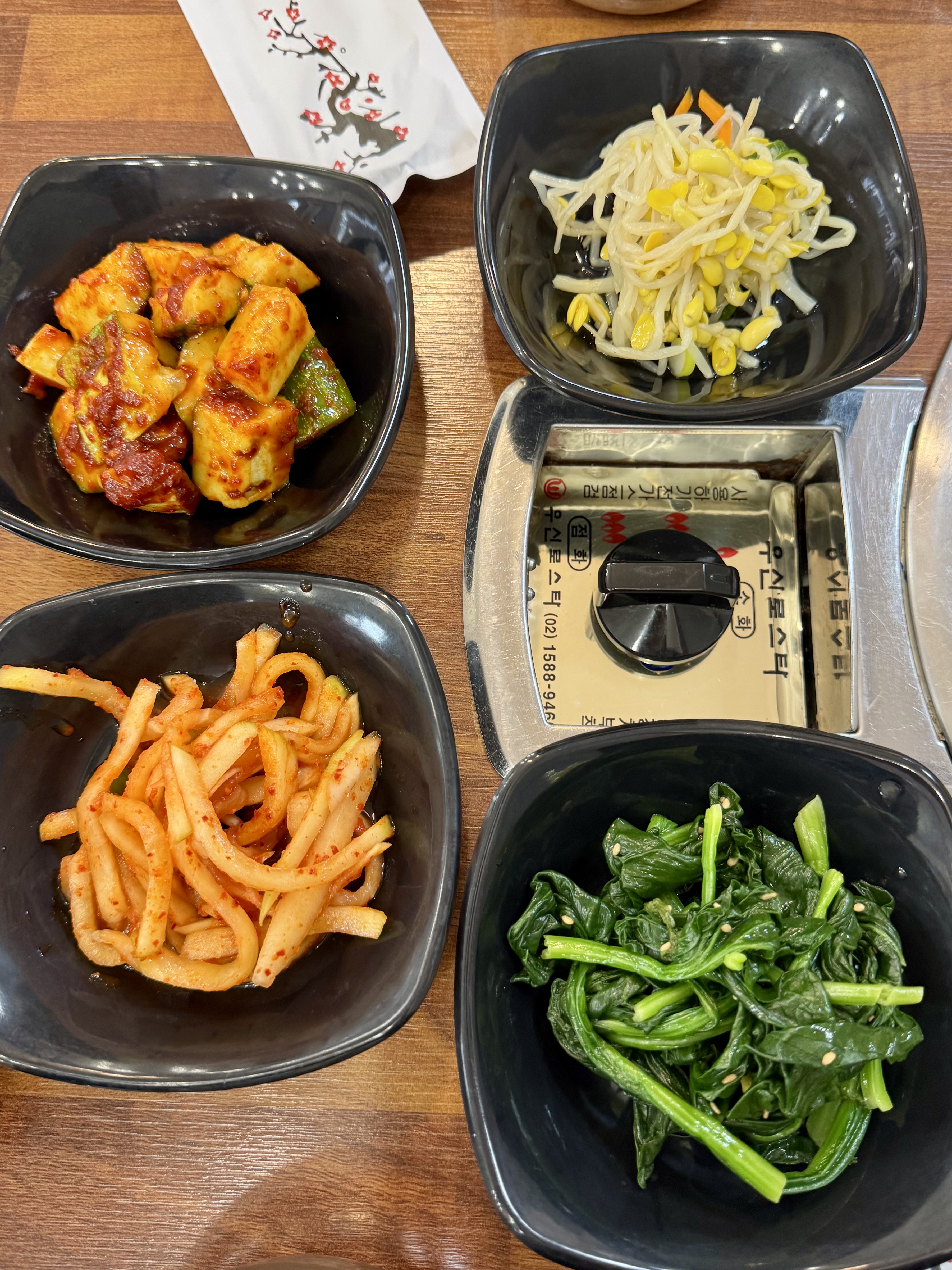 반찬은 4가지가 나오는데 시금치나물,무생채,오이무침,콩나물무침 으로 기본반찬이나와요~